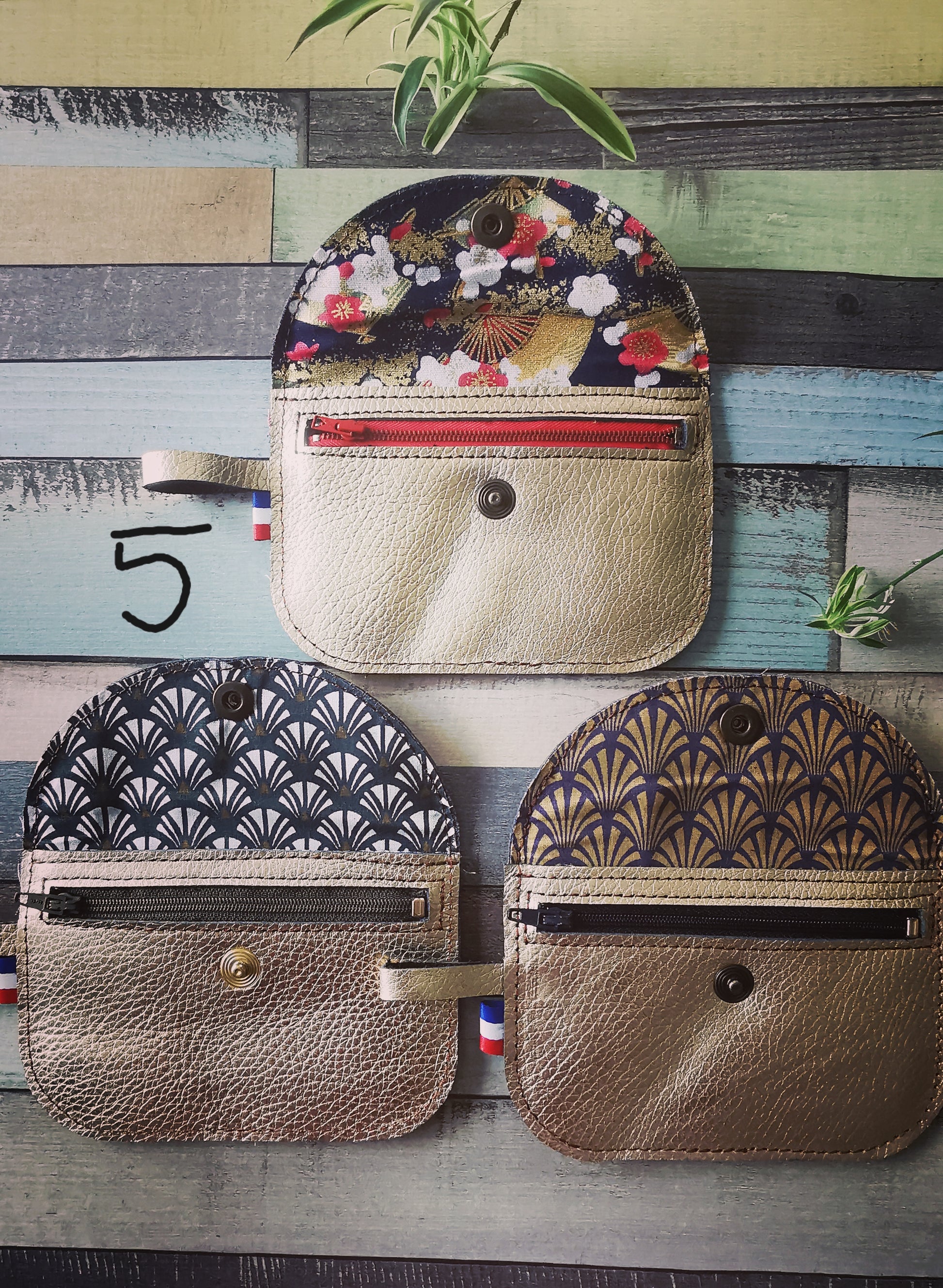 Pochette en cuir doublée tissus imprimés (sauf pour le modèle n°6, pas de photo).